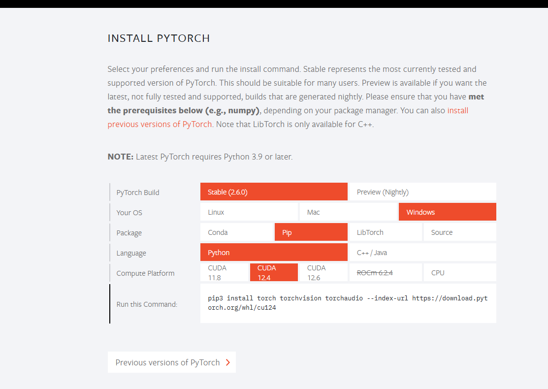 pip3 install torch torchvision torchaudio --index-url https://download.pytorch.org/whl/cu124