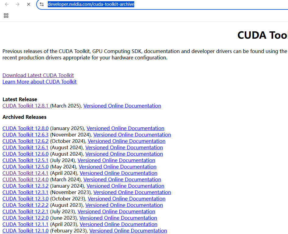 CUDA地址:https://developer.nvidia.com/cuda-toolkit