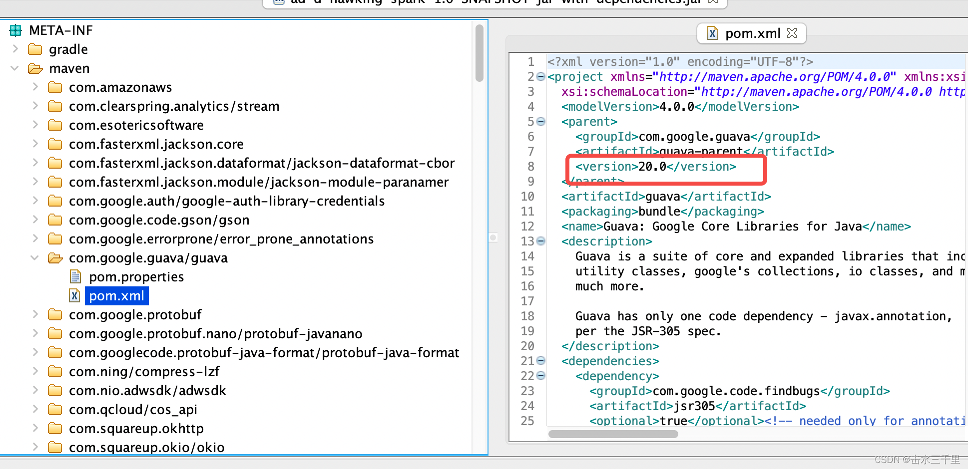 打的jar包中查看maven依赖版本
