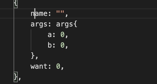 注意点:由于tests的类型是一个结构体切片[]struct,所以在生成的代码后面需要手动补一个逗号,,按保存就自动格式化代码了