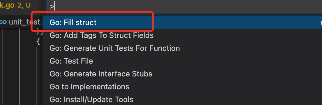步骤2.快捷键Shift+CMD+P,选择Go:Fill struct