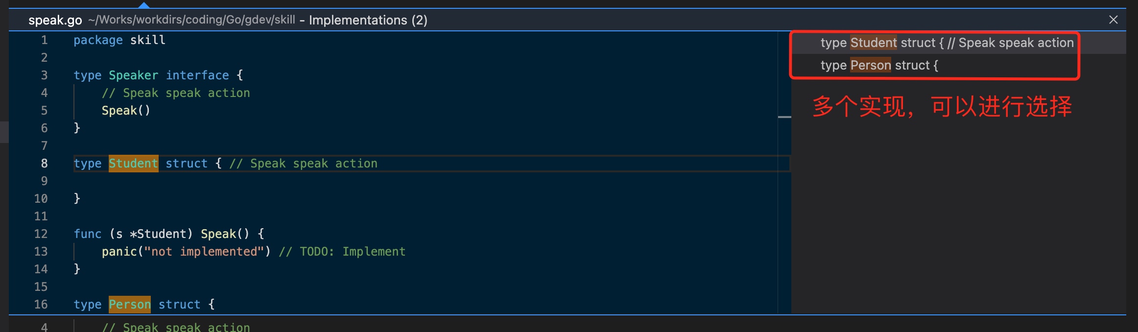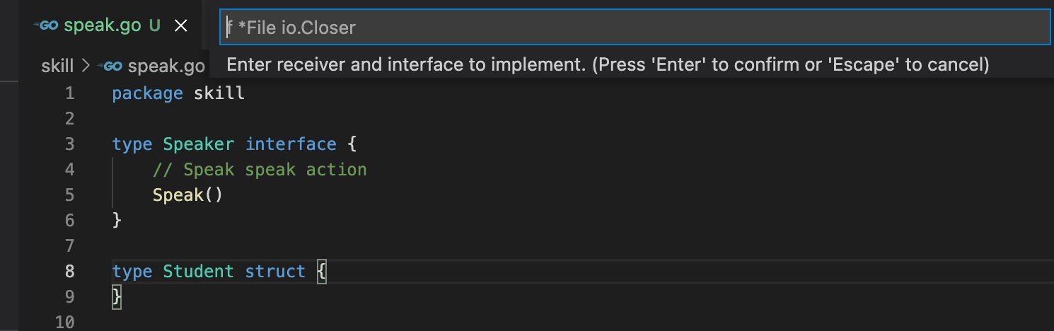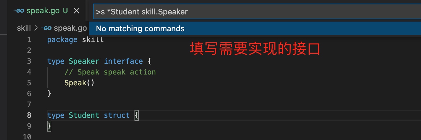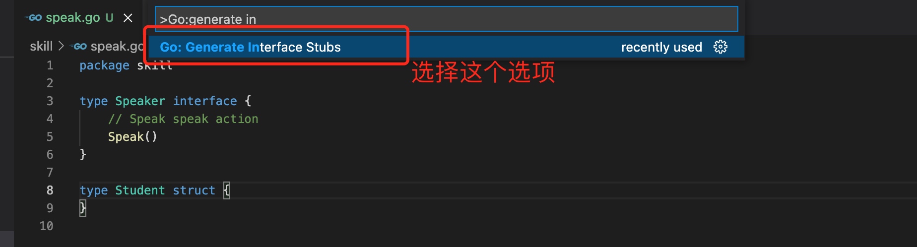 快捷键Shift+CMD+P,选择Go:Generate Interface Stubs
