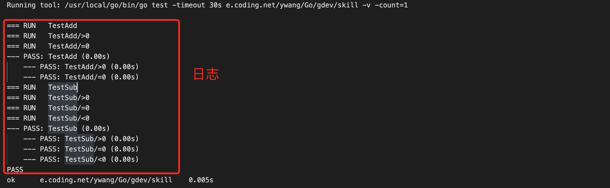 不过要值的注意的是,在测试函数中,使用t.Log()函数是不会在终端输出内容的,需要加一个-v参数: