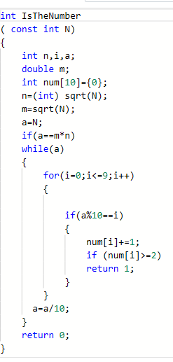 数据处理:int IsTheNumber ( const int N) //判断任一给定整数N是否满足条件:它是完全平方数,又至少有两位数字