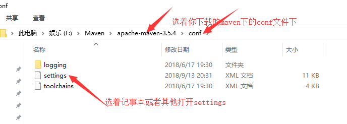 打开maven安装目录,打开conf目录下的setting.xml文件。