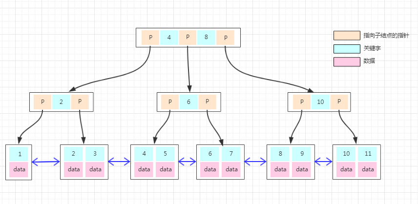 4、所有叶子节点之间都有一个链指针。