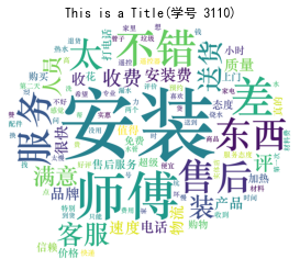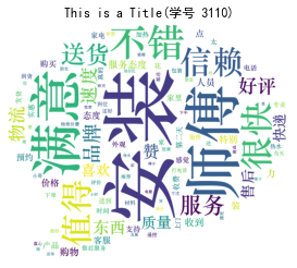 # 代码12-5 绘制词云 import matplotlib.pyplot as plt from wordcloud import WordCloud frequencies = result.groupby(by = ['word'])['word'].count() frequencies = frequencies.sort_values(ascending = False) backgroud_Image=plt.imread("D:\\360MoveData\\Users\\86130\\Documents\\Tencent Files\\2268756693\\FileRecv\\pl.jpg") wordcloud = WordCloud(font_path="C:\\Windows\\Fonts\\STZHONGS.ttf", max_words=100, background_color='white', mask=backgroud_Image) my_wordcloud = wordcloud.fit_words(frequencies) plt.imshow(my_wordcloud) plt.axis('off') plt.rcParams['font.sans-serif'] = ['SimHei'] # 添加这条可以让图形显示中文 plt.title('This is a Title(学号 3110)') plt.show() # 将结果写出 result.to_csv("D:\\360MoveData\\Users\\86130\\Documents\\Tencent Files\\2268756693\\FileRecv\\word.csv", index = False, encoding = 'utf-8')