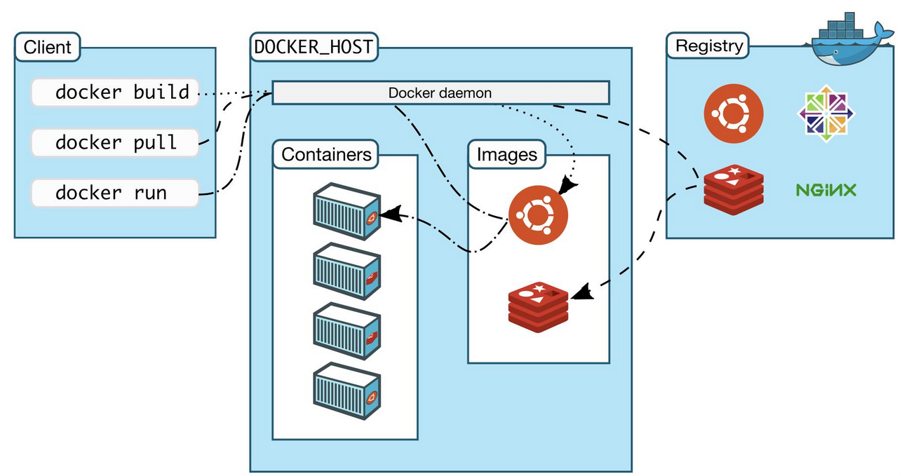 Docker_Host:docker服务,通过docker守护进程来调度管理Container和Image