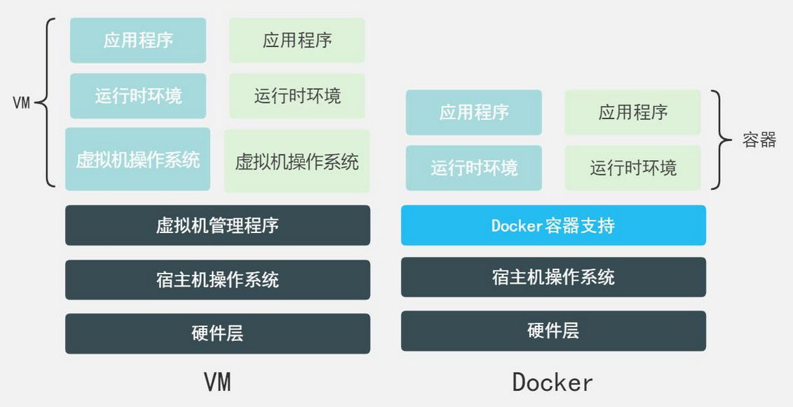 - Docker用的是宿主机的操作系统内核,VM用的是虚拟机操作系统的内核,因此docker在创建新的容器时不需要像VM一样重新加载一个操作系统内核