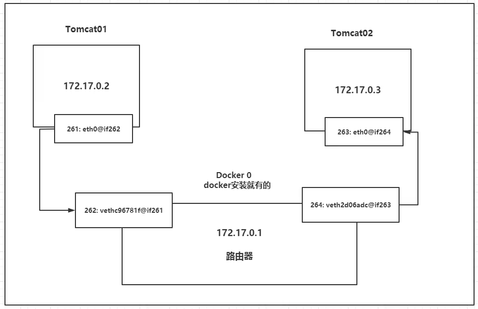 原理:docker0相当于一个路由器,容器之间可以通过他进行相互通信(默认不指定网络的情况下都是有docker0进行路由的,docker会给容器分配一个默认的可用ip)