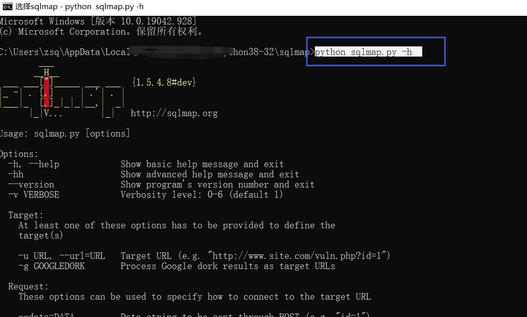 输入 sqlmap.py -h 弹出文件解决方法