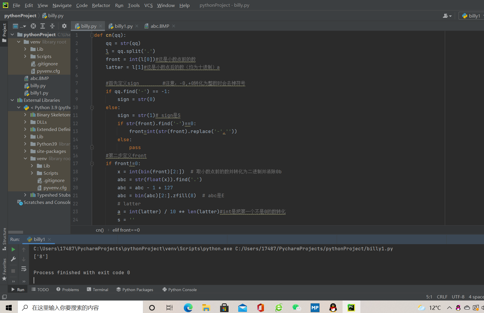 1.利用split命令进行浮点数的小数点前后数字的分离时,必须要把浮点数转化为字符串的形式才能用.split命令