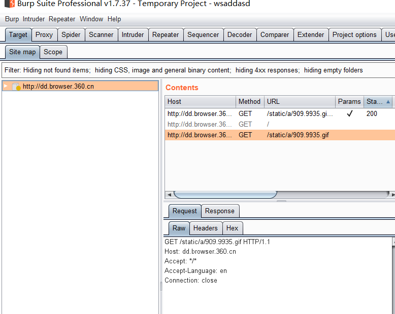 接下来我们对任意一个网站进行burpsuite抓包,显示如下图