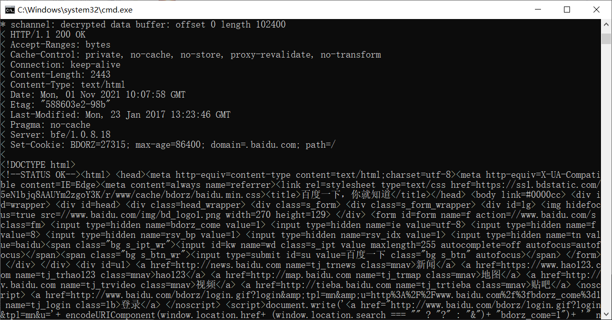 如上图我们成功构造了url(百度)的消息头,并且将html信息打印出来