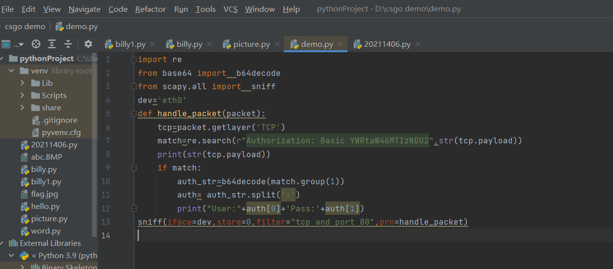 使用sniff函数捕获网络中数据包,并设置过滤器80