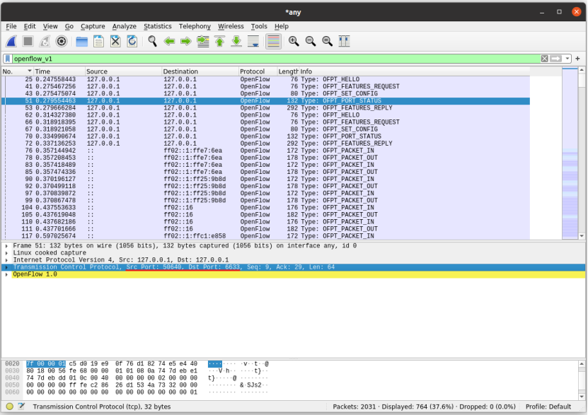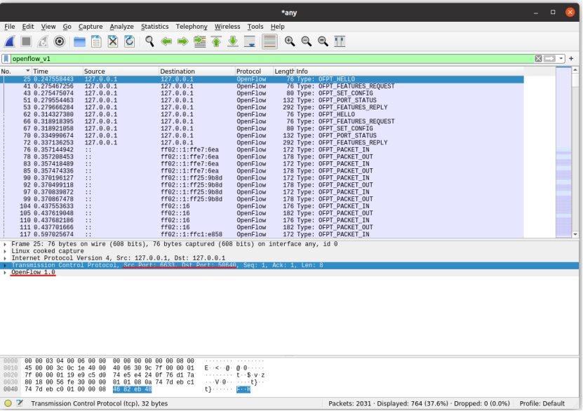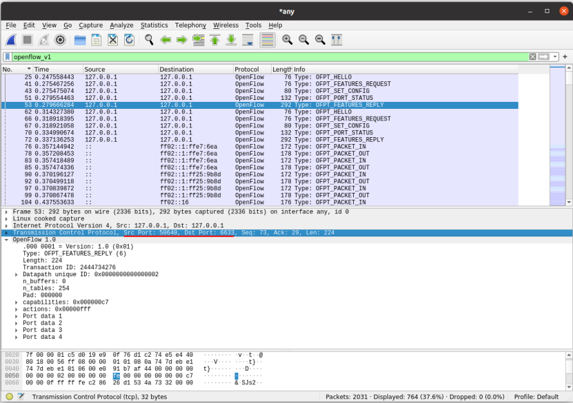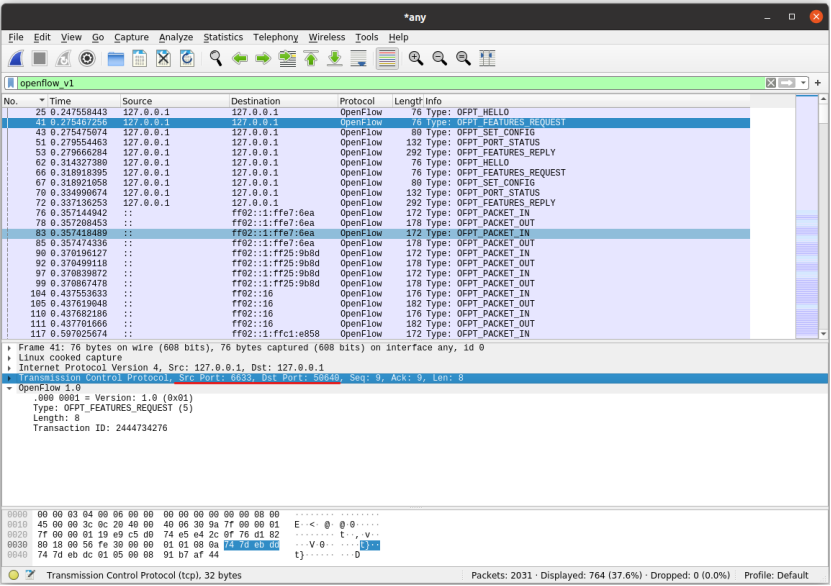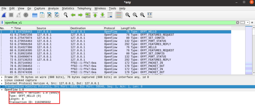 3.回答问题:交换机与控制器建立通信时是使用TCP协议还是UDP协议?