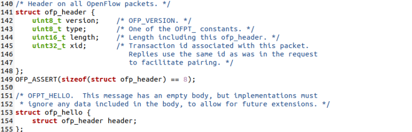 源码参数格式与HELLO相同,与上述ofp_header结构体中数据相同。