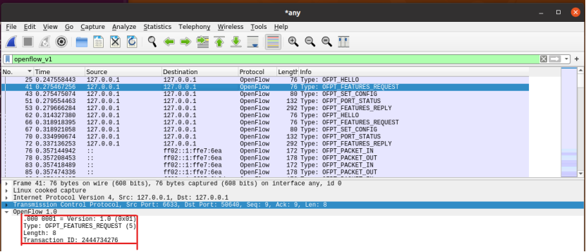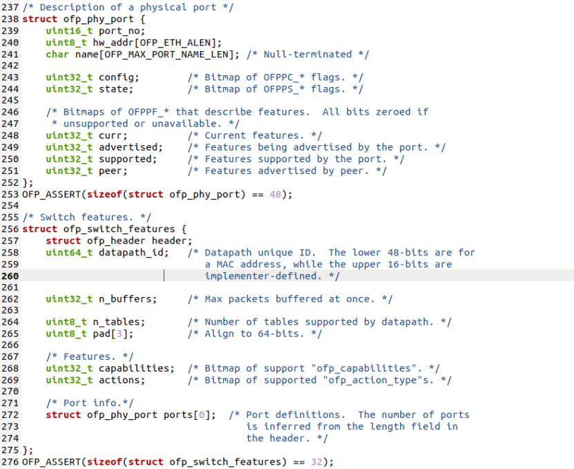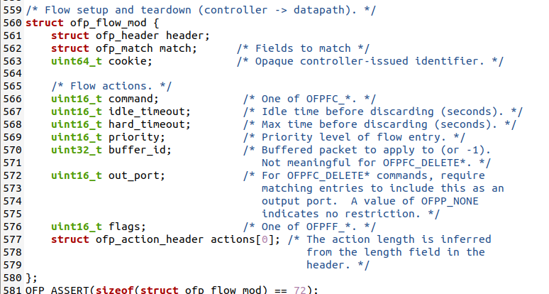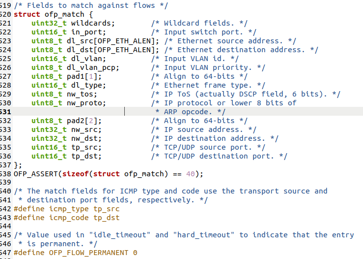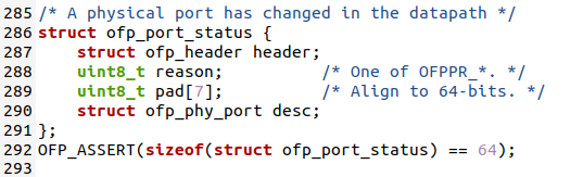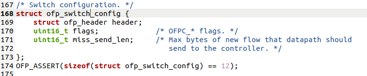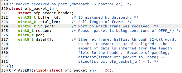 将抓包基础要求第2步的抓包结果对照OpenFlow源码,了解OpenFlow主要消息类型对应的数据结构定义。
