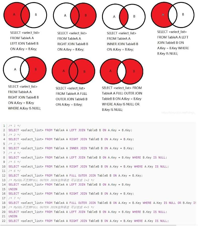 左连接:select B.字段 from 左表 A left join 右表 B on A.字段 = B.字段 where B.字段 is not null;