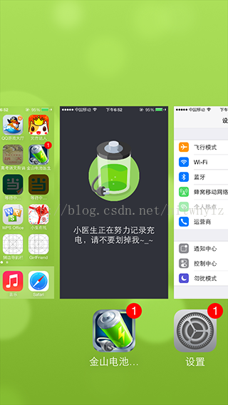 之前在用电池医生的时候, 发现它有这样一个功能:当应用进入后台的时候, 会显示另外一张图片覆盖App Switcher显示的界面。