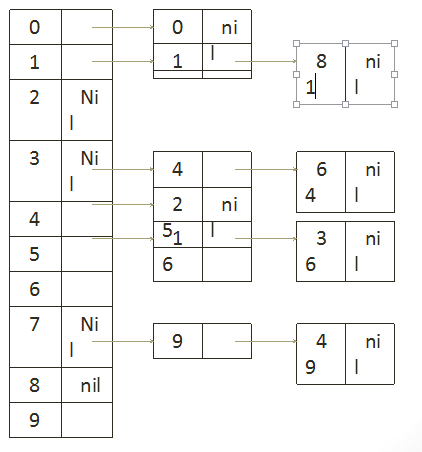採用分离链接技术构造哈希表,把哈希值同样的keyword串成链表。即哈希值为x的全部元素存储在以head[x]为表头的单链表中。
