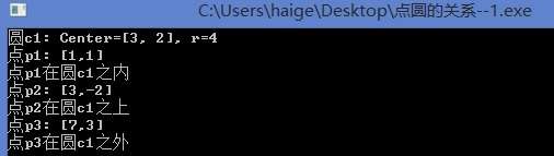 /* *Copyright (c)2015,烟台大学计算机与控制project学院 *All rights reserved. *文件名:sum123.cpp *作 者:林海云 *完毕日期:2015年6月12日 *版 本 号:v2.0 * *问题描写叙述:(1)先建立一个Point(点)类,包括数据成员x,y(坐标点)。 (2)以Point为基类。派生出一个Circle(圆)类。添加数据成员(半径)。基类的成员表示圆心; (3)编写上述两类中的构造、析构函数及必要运算符重载函数(本项目主要是输入输出); (4)定义友元函数int locate。推断点p与圆的位置关系(返回值<0圆内,==0圆上。>0 圆外)。 *程序输入:无 *程序输出:按要求输出 */ #include <iostream> #include<Cmath> using namespace std; class Point { public: Point(double a=0,double b=0):x(a),y(b) {} double distance(const Point &p) const; //求距离 friend ostream & operator<<(ostream &,const Point &); protected: double x,y; }; double Point::distance(const Point &p) const { double dx = x-p.x; double dy = y-p.y; return sqrt(dx*dx+dy*dy); } ostream & operator<<(ostream &output,const Point &p) { output<<"["<<p.x<<","<<p.y<<"]"<<endl; return output; } class Circle:public Point { public: Circle(double a=0,double b=0,double r=0) :Point(a,b),radius(r) { }; friend ostream &operator<<(ostream &,const Circle &); friend int locate(const Point &p, const Circle &c); //推断点p在圆上、圆内或圆外,返回值:<0圆内,==0圆上,>0 圆外 protected: double radius; }; ostream &operator<<(ostream &output,const Circle &c) { output<<"Center=["<<c.x<<", "<<c.y<<"], r="<<c.radius<<endl; return output; } //推断点p在圆内、圆c内或圆c外 int locate(const Point &p, const Circle &c) { const Point cp(c.x,c.y); //圆心 double d = cp.distance(p); if (abs(d - c.radius) < 1e-7) return 0; //相等 else if (d < c.radius) return -1; //圆内 else return 1; //圆外 } int main( ) { Circle c1(3,2,4); Point p1(1,1),p2(3,-2),p3(7,3); cout<<"圆c1: "<<c1; cout<<"点p1: "<<p1; cout<<"点p1在圆c1之"<<((locate(p1, c1)>0)?"外":((locate(p1, c1)<0)?"内":"上"))<<endl; cout<<"点p2: "<<p2; cout<<"点p2在圆c1之"<<((locate(p2, c1)>0)?"外":((locate(p2, c1)<0)?"内":"上"))<<endl; cout<<"点p3: "<<p3; cout<<"点p3在圆c1之"<<((locate(p3, c1)>0)?"外":((locate(p3, c1)<0)?"内":"上"))<<endl; return 0; }