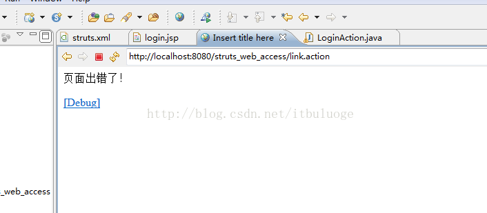 package com.test.action; import java.util.Map; import com.opensymphony.xwork2.ActionContext; import com.opensymphony.xwork2.ActionSupport; public class LoginAction extends ActionSupport{ /** * */ private static final long serialVersionUID = 1L; private Map request; private Map session; private Map application; public LoginAction() { System.out.println("loginaction构造函数!"); request=(Map) ActionContext.getContext().get("request"); session=ActionContext.getContext().getSession(); application=ActionContext.getContext().getApplication(); } public String execute() { //System.out.println(request); //System.out.println(session); //System.out.println(application); int i=100/0;/*这个地方会抛出异常,默认情况下struts2是不会捕获异常,直接抛出*/ request.put("msg", "欢迎你!"); return SUCCESS; } }