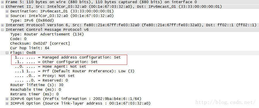 O: Other Configuration这个bit假设是1,代表请电脑去跟DHCPv6要DNS等等信息。