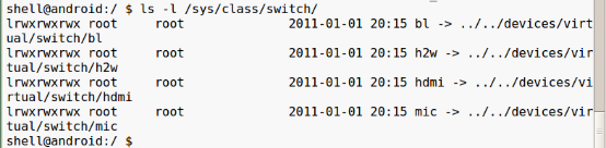 先从直观的来看一下/sys/class/switch类中都有些什么吧。