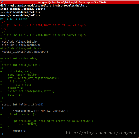 那就以LDD3中的最简单的Hello World样例来做一个switch样例: