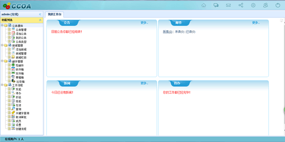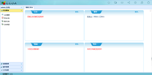 CCOA是驰骋又一款对外开源的软件。集成了CCFlow(流程设计器、表单设计器)CCIM与GPM(权限系统管理),能够说,CCOA集中了驰骋开源的全部产品。同一时候,CCOA本身也具有一些功能。能够帮助开发者实现高速开发。