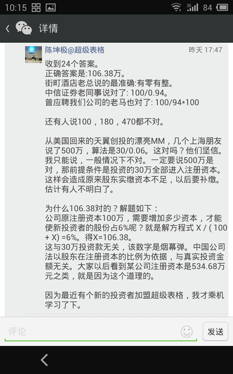 这篇文章来自我的微信朋友圈,并不特别好玩,但能够给创业者补点財务知识