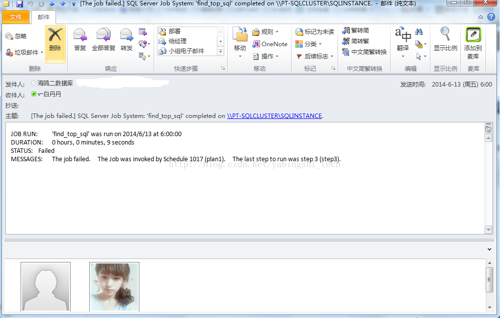 邮件显示,作业的第三个步骤报错。