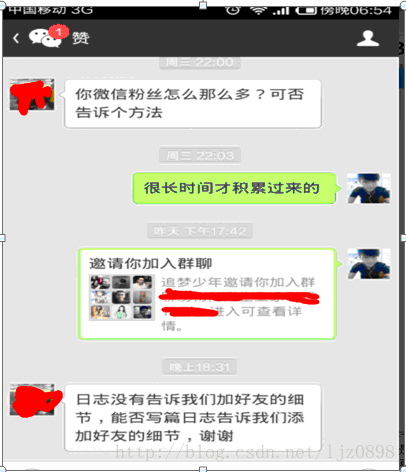 这几天别人看了我上一篇日志 <几千微信好友是怎么来的> 的以后,常常有人私聊我。问我这篇日志主要不过告诉我方法,还没告诉我细节非常多细节没告诉我让我又一次写篇日志告诉他们的细节和一些别的方法。以下的部分好友的聊天记录截图,