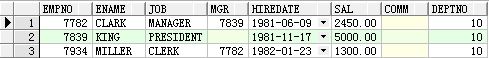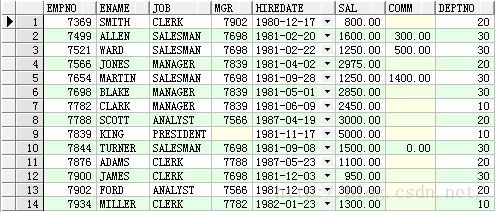 查看emp10 和 emp 表数据项,emp10 共同拥有3条记录。emp表有14条记录。