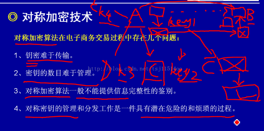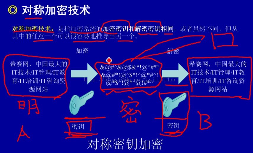 对称加密的加密密钥和解密密钥同样。而非对称加密的加密密钥和解密密钥不同,加密密钥能够公开而解密密钥须要保密。