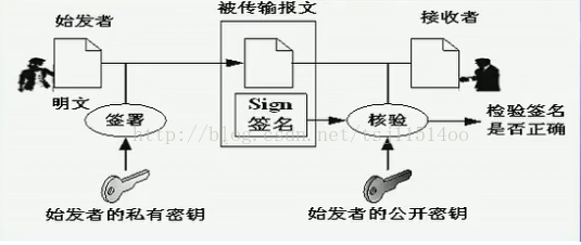 首先,将摘要信息用发送者的私钥加密,与原文一起传送给接收者。