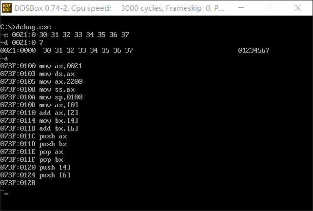 实验二 用机器指令和汇编指令编程