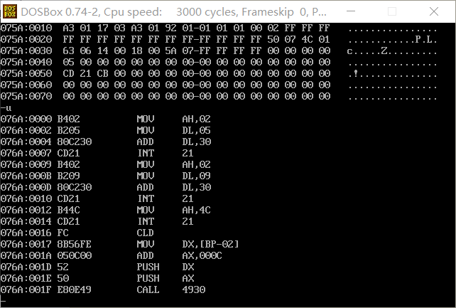 CX的值为0016 而DS的值为075A,而CS的值为076A,满足公式(cs)=(ds)+10H