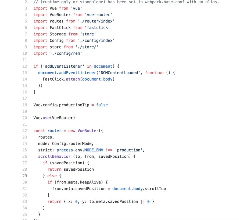 export default [{ path: '/', component: App, // 顶层路由,对应index.html children: [{ path: '/home', // 首页 component: home }, { path: '/logistics', // 物流 component: logistics, meta: { login: true } }, { path: '/cart', // 购物车 component: cart, meta: { login: true } }, { path: '/profile', // 我的 component: profile }, { path: '/login', // 登录界面 component: login }, { path: '*', redirect: '/home' }] }]