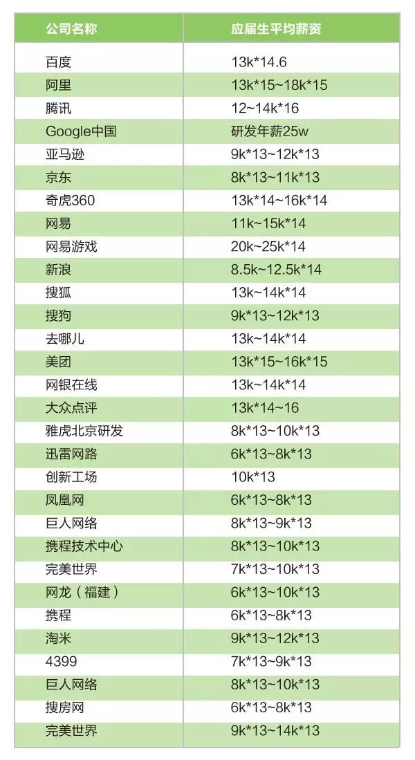 4.百度(北京、深圳):约19万,个别20万以上,在北京工作的优秀者可解决北京户口,但近年以来百度受累于佣金策略莆田系医院等事件,网上恶评如潮,号称“以一己之力降低全国人民上网体验”,所以不排除在未来将会调高薪酬以吸引优秀的CS人才。