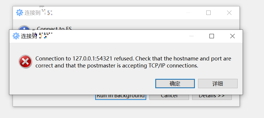 Connection to 127.0.0.1:54321 refused.Check that the hostname and port are correct and that the postmaster is accepting TCP/IP connctions.