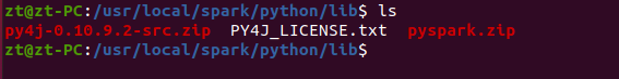 注:环境变量中的py4j包必须与/usr/local/spark/python/lib/下的包命名一致