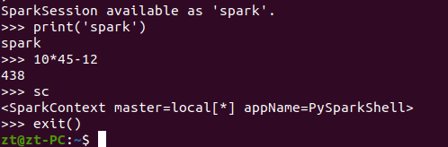 可以用以下命令或者Ctrl+D退出pyspark