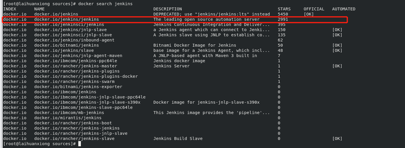 - docker search jenkins