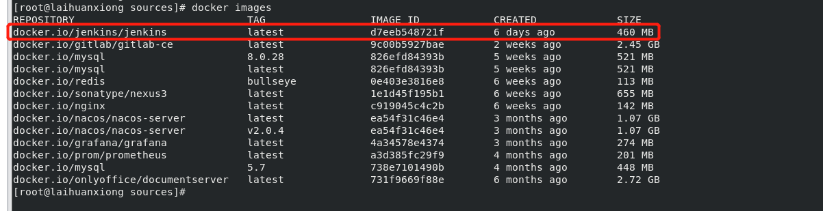 | jenkins/jenkins | 镜像的名称,这里也可以写镜像ID |