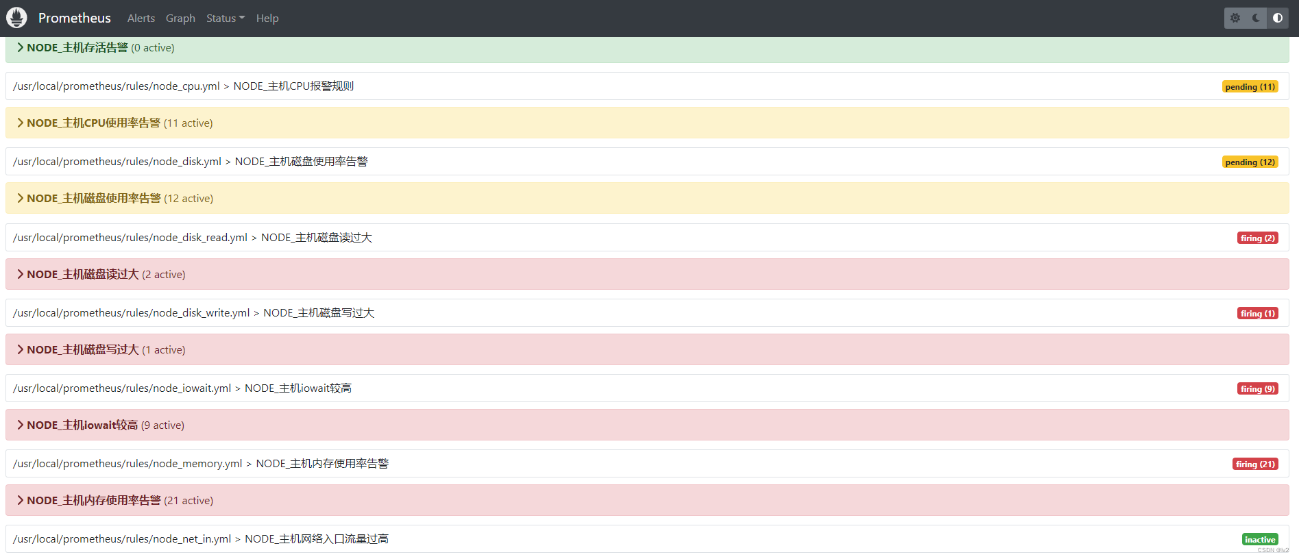 至此,prometheus告警系统告警规则部分就完成了,其它告警规则根据需要自行添加,这里就不做分享了