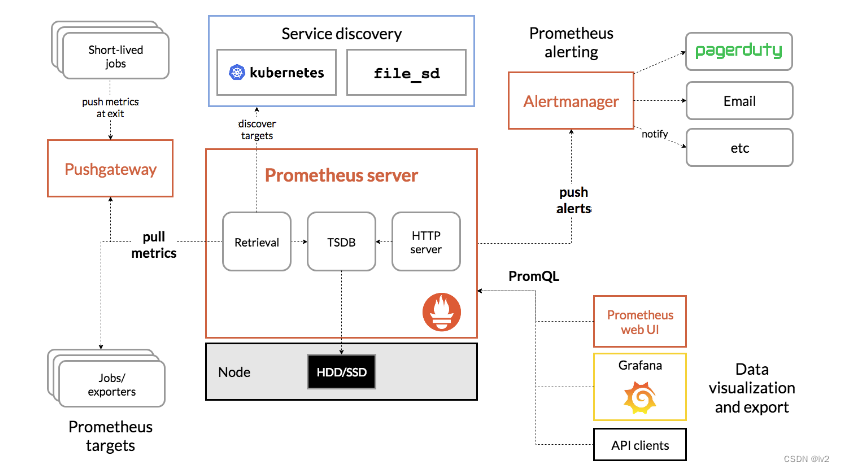 在开始之前,需要了解下prometheus和altermanger之间的关系是什么?从prometheus的架构及生态系统组件来看
