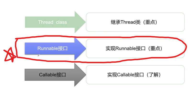 //创建线程方式2:实现runnable接口,重写run方法,执行线程需要丢入runnable接口类,调用start