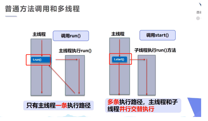 testThread1.start(); //调用start()方法,两个同时进行。调用run()方法,先执行run()方法
